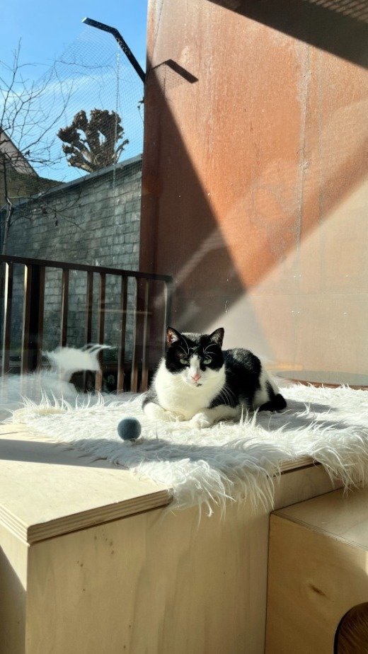 Evy en Hannah hebben heel duidelijk favoriete plekjes. Wanneer het café open is verkiest Evy de krabpaal in de privéruimte, zo blijft ze ver genoeg van al die humans die ze niet kent. Ook Hannah verkiest op zo’n moment een schuilplek, zij heeft een mandje onder een zetel en zal bijna altijd daar liggen slapen.