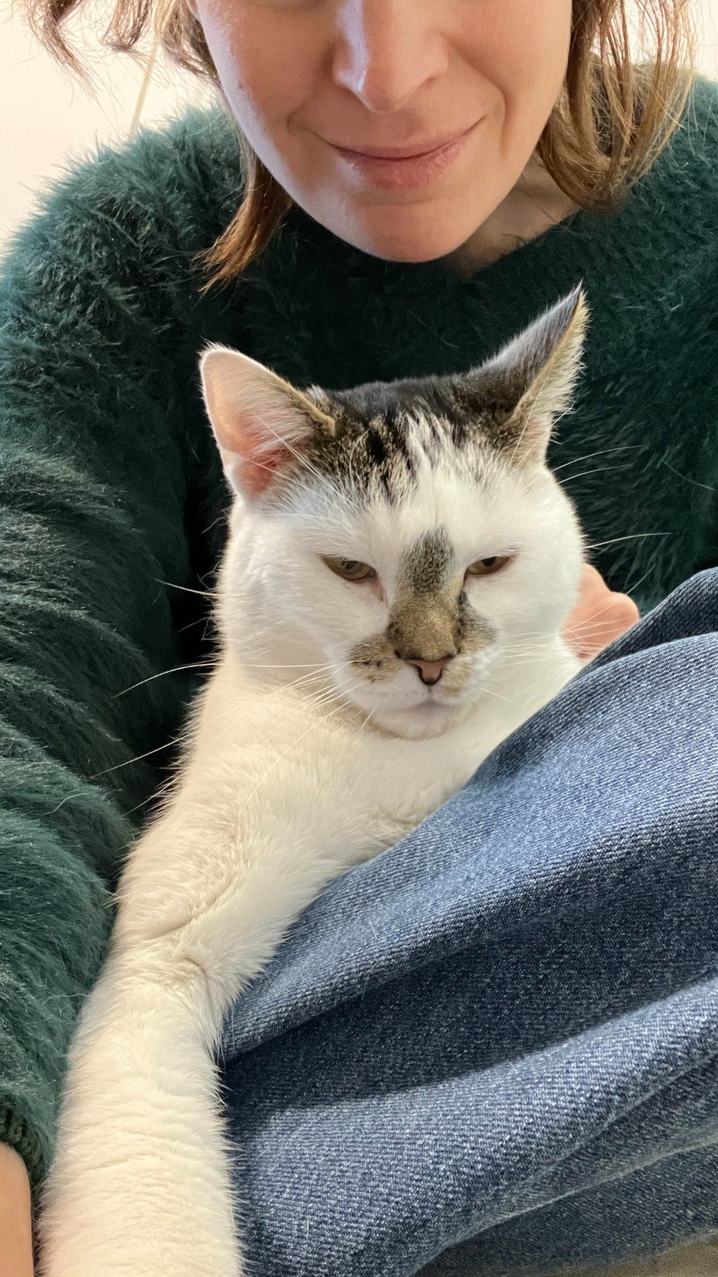 Vlekje is mega lief en schattig en knuffelig en soms een beetje opdringerig.